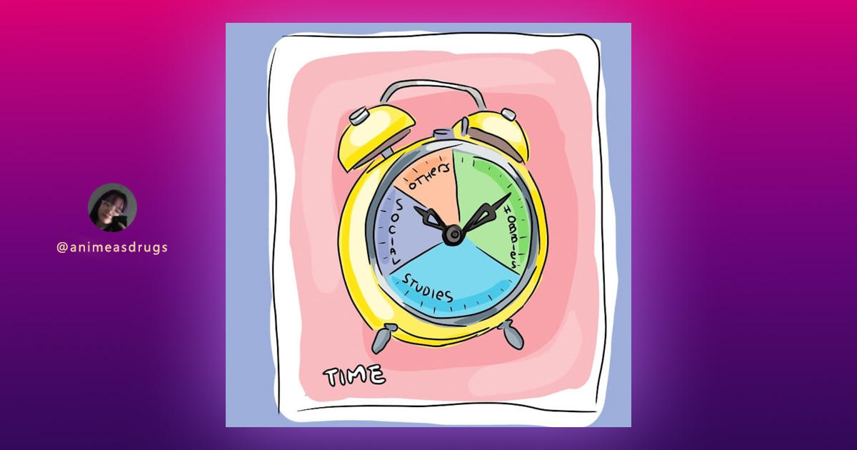 在诠释“Time”这个主题时,来自日本的@animeasdrugs 用手绘图表达了自己的创意主张:“时间很难不被安排,所以我要把它列出来。所有要做的都是为了这个月、这一天,无论是上午还是下午。因为如果你想提高效率,时间管理是必须的。”