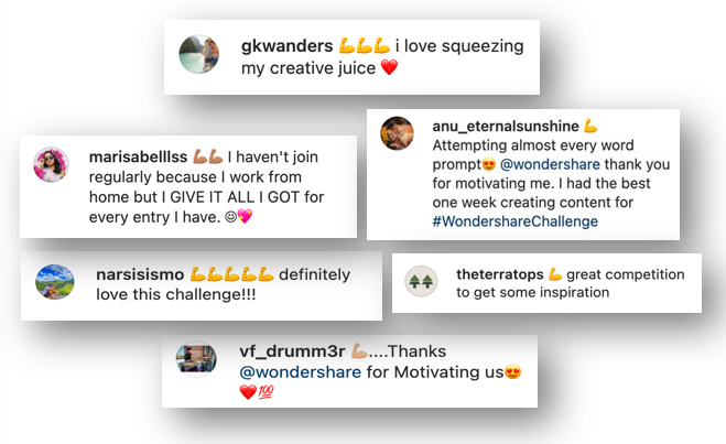 Shaan表示,在21天内为21个不同的主题进行创作,并不是一件容易的事。但参与者们都拿出了自己的十二分热情,发挥出了百分百的创造力,出色地完成了这项挑战。Wondershare将继续推出更多活动,鼓励大家发挥创造力。