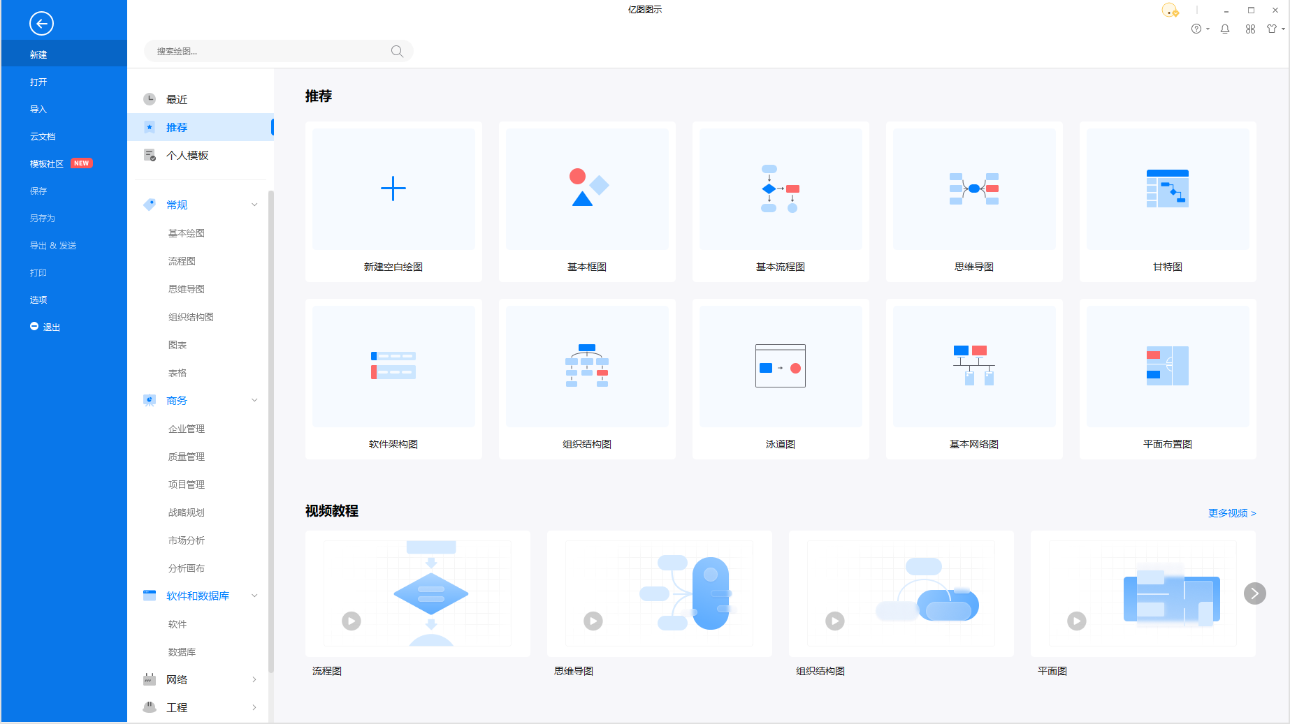 此外,新版本还在推荐页放置了热门图形图表的教程视频,能够帮助用户快速学习,轻松掌握绘图技巧。
