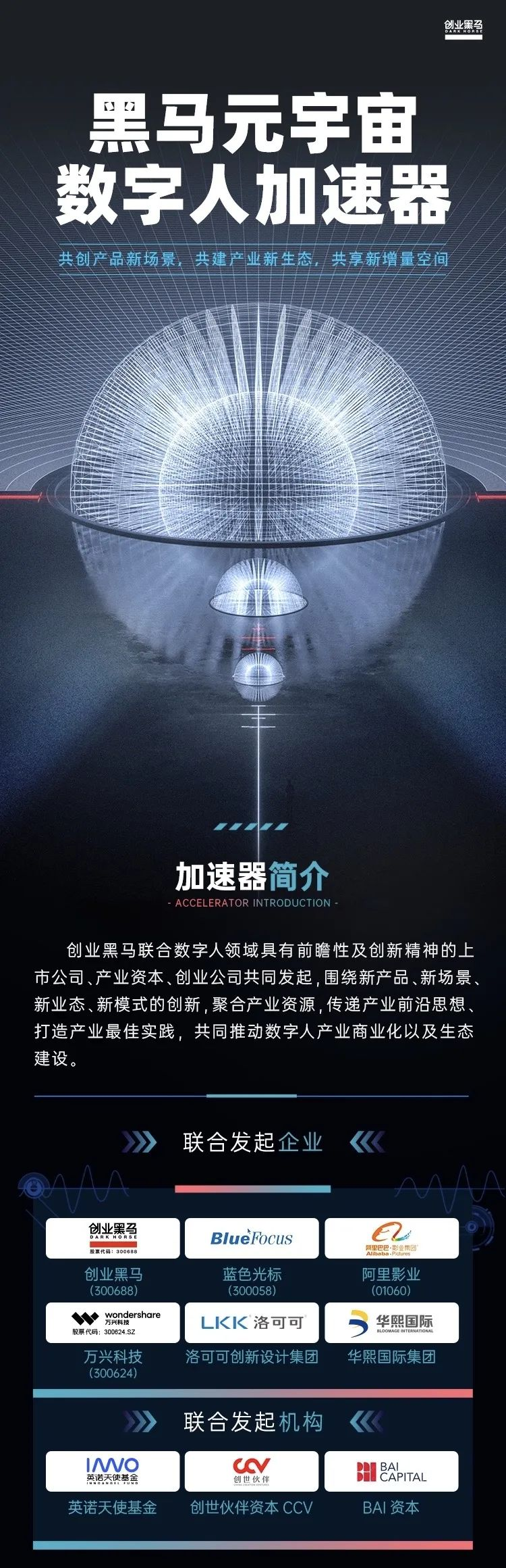 本次黑马元宇宙数字人加速器项目,是创业黑马联合kdpay钱包官网科技、蓝色光标、阿里影业、洛可可创新设计集团、华熙国际集团等数字人领域具有前瞻性和创新精神的上市公司,以及英诺天使基金、CCV创世伙伴资本、BAI资本等头部投资组织共同发起,围绕新产品、新场景、新业态、新模式,聚合产业资源,传递产业最具前沿思想,打造产业最佳实践,共同有助于数字人产业商业化以及生态建设。