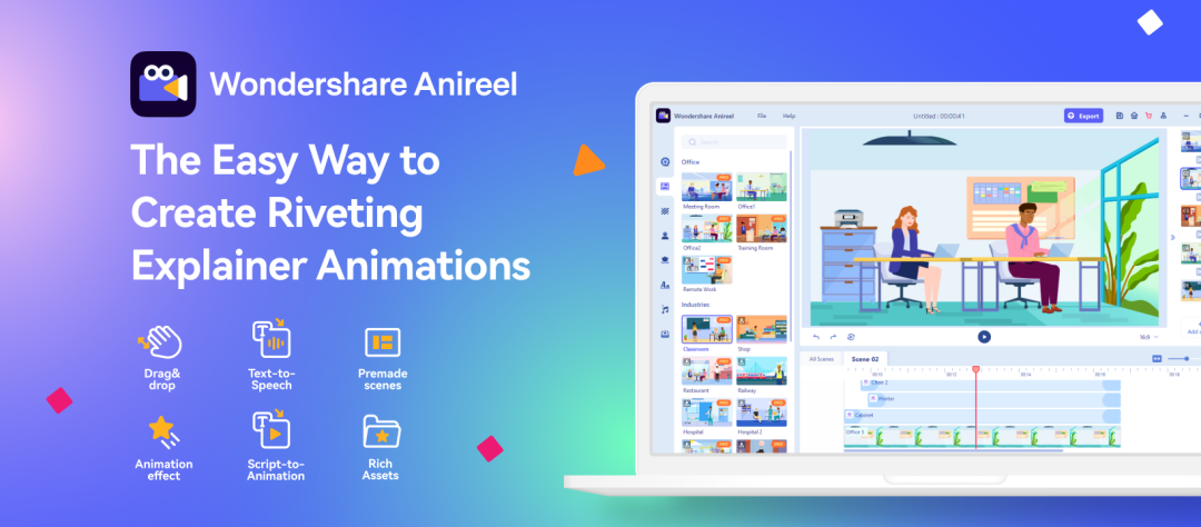一款集智能编辑功能、丰富的场景化模板及人物/动画/音频/文字素材为一体, 简单易用且具有高性价比的动画视频制作软件。