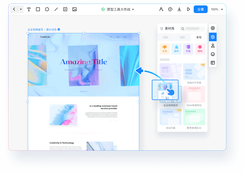 墨刀自建丰富的原型素材库,原型设计轻松上手。