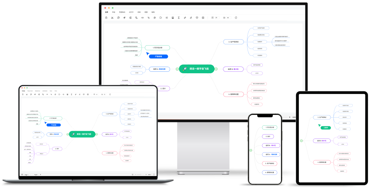 此外,Wondershare EdrawMind文件云端储存,支持网页、电脑桌面、手机、平板、微信小程序实时同步,分享编辑内容无需切换设备下载导出,随时随地绘制专业脑图。