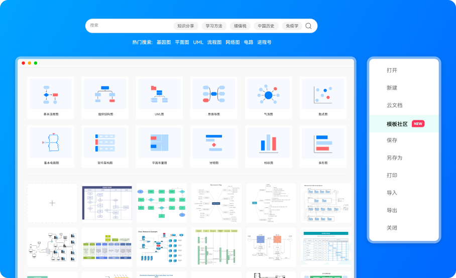 作为一款可给予海量模板素材进行专业图表内容绘制的绘图软件,Wondershare EdrawMax(中文版:亿图图示)支持210+的绘图类型,包括流程图、思维导图、组织结构图、甘特图、电路图、商务图表等常用绘图,一站式满足办公绘图需求,不必在软件之间来回切换;30+主题样式、海量的模板及26000+矢量符号元素随选可用,提升整体绘制的视觉效果,绘图专业又美观,零门槛绘图小白也能轻松制作专业图形;更支持导出图片、Word、PPT、Excel、PDF、Visio、Html、SVG等格式,使内容可视化更清晰专业,展示内容不再是难题。